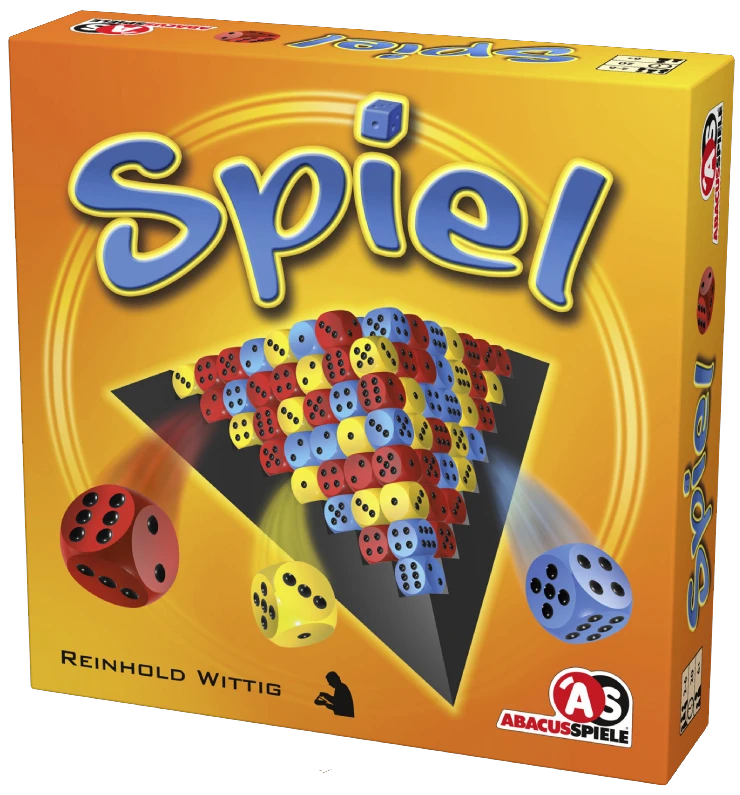 First published by Edition Perlhuhn in 1980 (281 dice for 57 games), by Kosmos in 1986 and re-issued by Abacus in 2004 with only 166 dice and fewer games, too. In 2011, Abacus revived it yet again, but with only 121 dice.