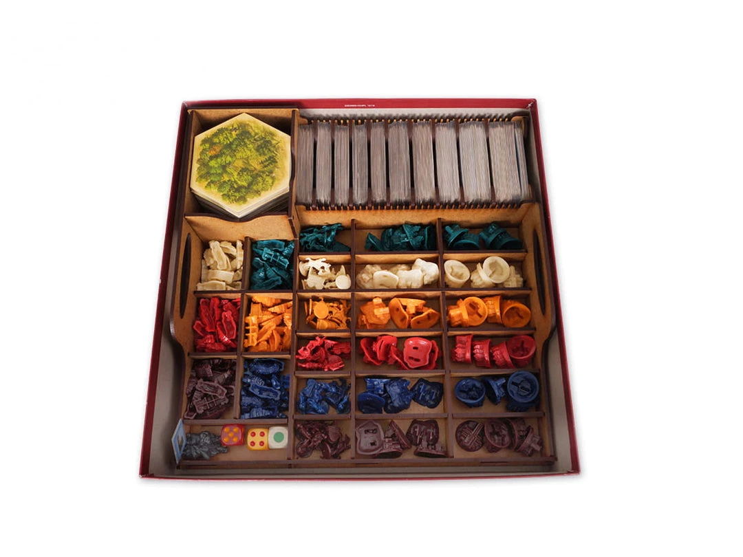 e-Raptor Insert compatible with Catan + Traders & Barbarians + 5-6 Players Expansions is your must have accessory designed to organize and improve the experience of the gameplay.