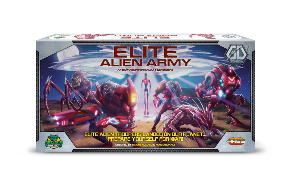 The Elite Alien Army expansion enhances the game difficulty and the overall game experience by combining the Galaxy Defenders core set elements with these new aliens.