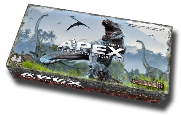 Apex is a deck-building game, played solo or with up to 5 friends. You play as a prehistoric predator competing for territory and resources against other predators. Each playable species has a unique deck to master. Each deck has different strengths, weaknesses, and strategies— creating a varied and constantly evolving experience.
