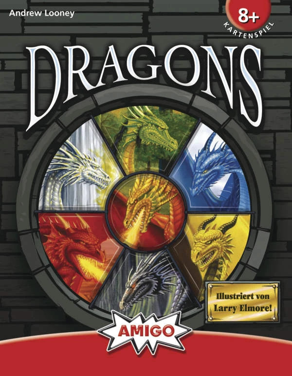 In Seven Dragons, players start with a secret goal color from the seven colored dragons and a hand of three cards. The Silver Dragon is laid on the table as the starting card; at this stage it is a wild card. The playing cards feature domino-like colored panels in the same manner as Aquarius, an earlier game design from Andy Looney.