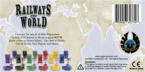Set of 4 Mini Expansions (Fuel Depot, Hotels, Mines, & Switch Tracks) in the Railways of the World Train Colors.