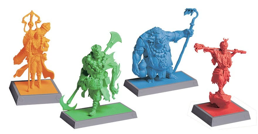 In Journey: Wrath of Demons, a cooperative miniatures board game based on a classic Chinese novel, four Pilgrims band together to search ancient China for the Sutras, sacred scriptures that will bring salvation to a world overrun with Demons. After fighting different Bull Demon minions, the climax of the game is the battle against the Bull Demon King. Game cards and custom dice combine for fast, tense action and critical choices enhance the Pilgrims’ skills during the game.