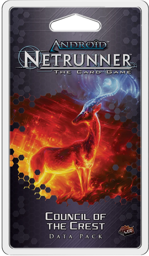 Council of the Crest introduces three copies of twenty-new cards to the world of Android: Netrunner focusing on the Sub-Sahran League, the efforts to build a second elevator connecting earth to the moon, and the conspiracies and corporate subterfuge underlining both. In this pack you will find a powerful new virus, a pair of dueling currents, a brand new NBN Identity, and much more.