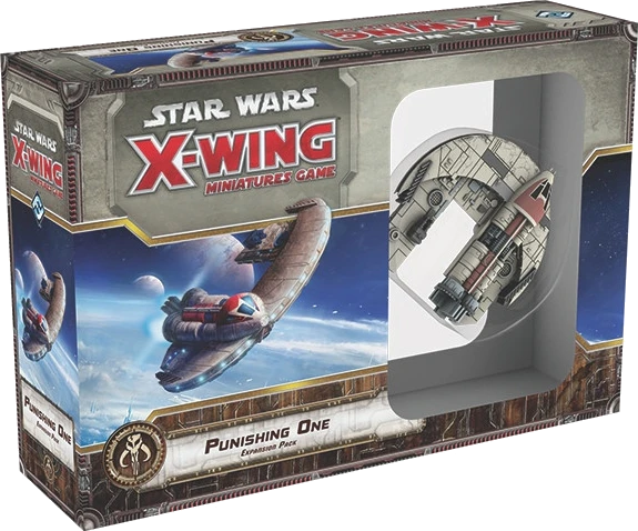 With its pre-painted, large-base JumpMaster 5000 miniature and its array of ship and upgrade cards, the Star Wars: X-Wing Miniatures Game – Punishing One brings both Dengar and his surprisingly powerful ship into play, along with a maneuver dial, all requisite tokens, and the ability to fire its turret in a 360-degree arc.