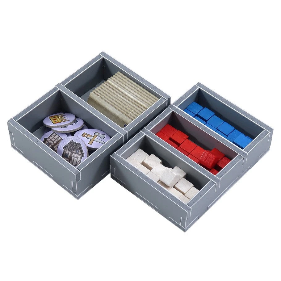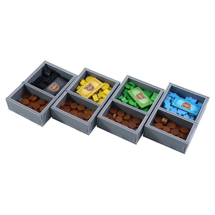 Insert compatible with Maracaibo®, and La Armada® expansion. The design provides both efficient storage and improved game play. Many of the trays can be utilised during the game, and they greatly aid set-up and clear-away times.