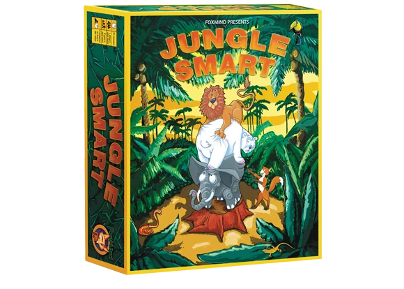 Jungle Smart – one of many names under which this design has been released – is a simultaneous puzzle solving game. Three animals stand on two platforms, and you are trying to change their configuration to match a target card by issuing commands like “Ma”, which moves the bottom animal on one platform to the top, or “Ni” which swaps the top two animals on the two platforms. As a result, the game is a race to shout out multi-syllable commands such as the eponymous “MaNiKi”, or “LoNiMaSo”. The first player to do so correctly wins the target card, and whoever collects the most cards wins!