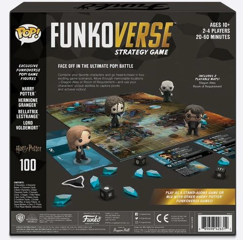 As of launch, the Funkoverse Strategy Game consists of four-character sets and two-character sets. Every four-character and two-character set is playable as a standalone game and comes with exclusive Funko Pop! Figures that aren’t available anywhere else, a double-sided board, tokens, cards, an item, and dice. Sets may be combined with one another, allowing players the freedom to play how they like!