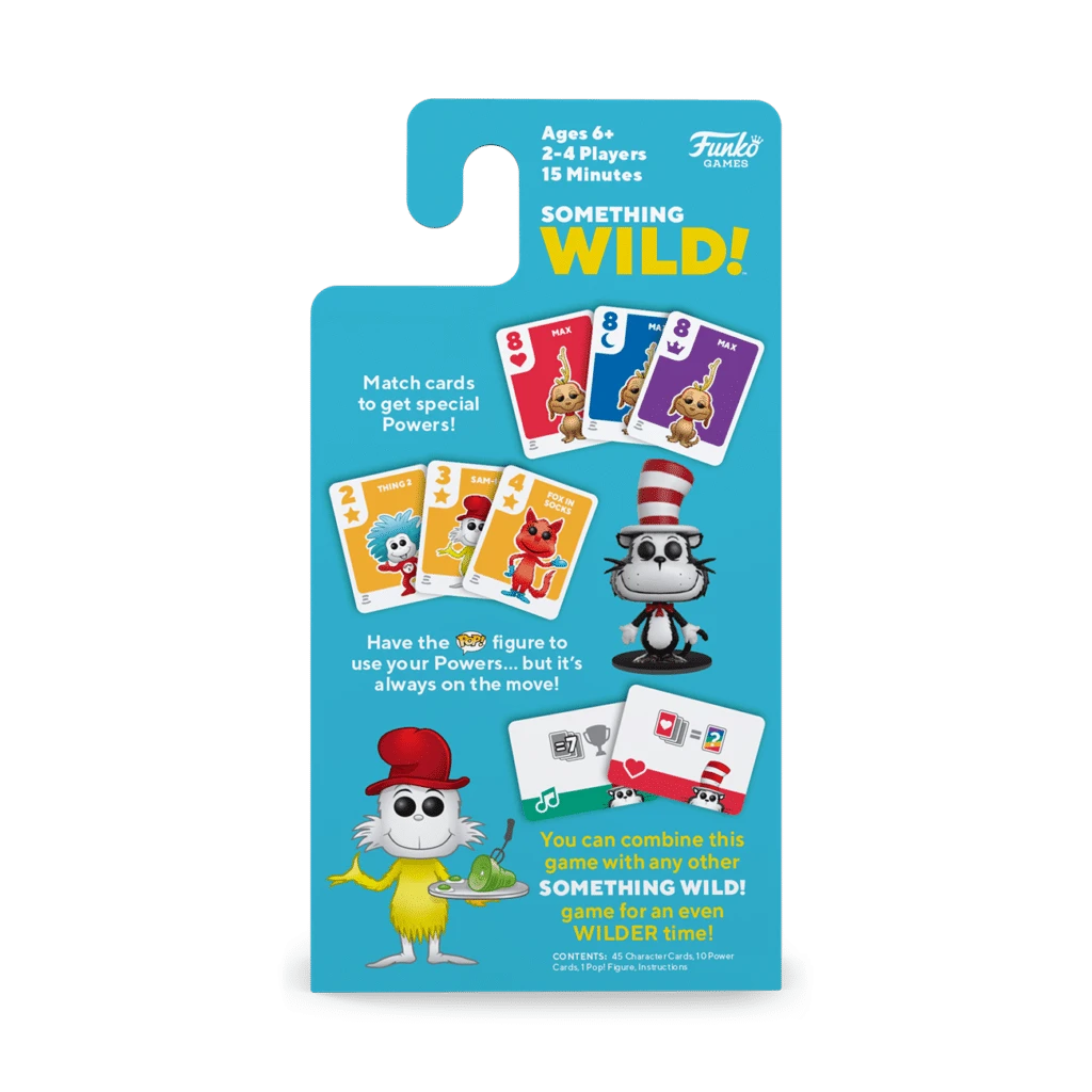 Something Wild: Dr Seuss – Card Game Something Wild is a line of card games featuring beloved characters and collectible Pop! pocket figures. Play numbered and colored character cards to make sets and runs. The first player to score three powers wins the game.