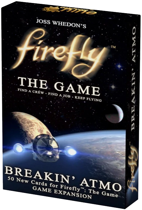 Firefly: The Game – Breakin’ Atmo introduces fifty new cards to the game: 25 job cards and 25 supply cards. New jobs present new challenges for captains and their crews with payouts based on their skill levels. The additional supply cards offer new resourceful crew members for hire and specialized gear to help you pull off the big scores.