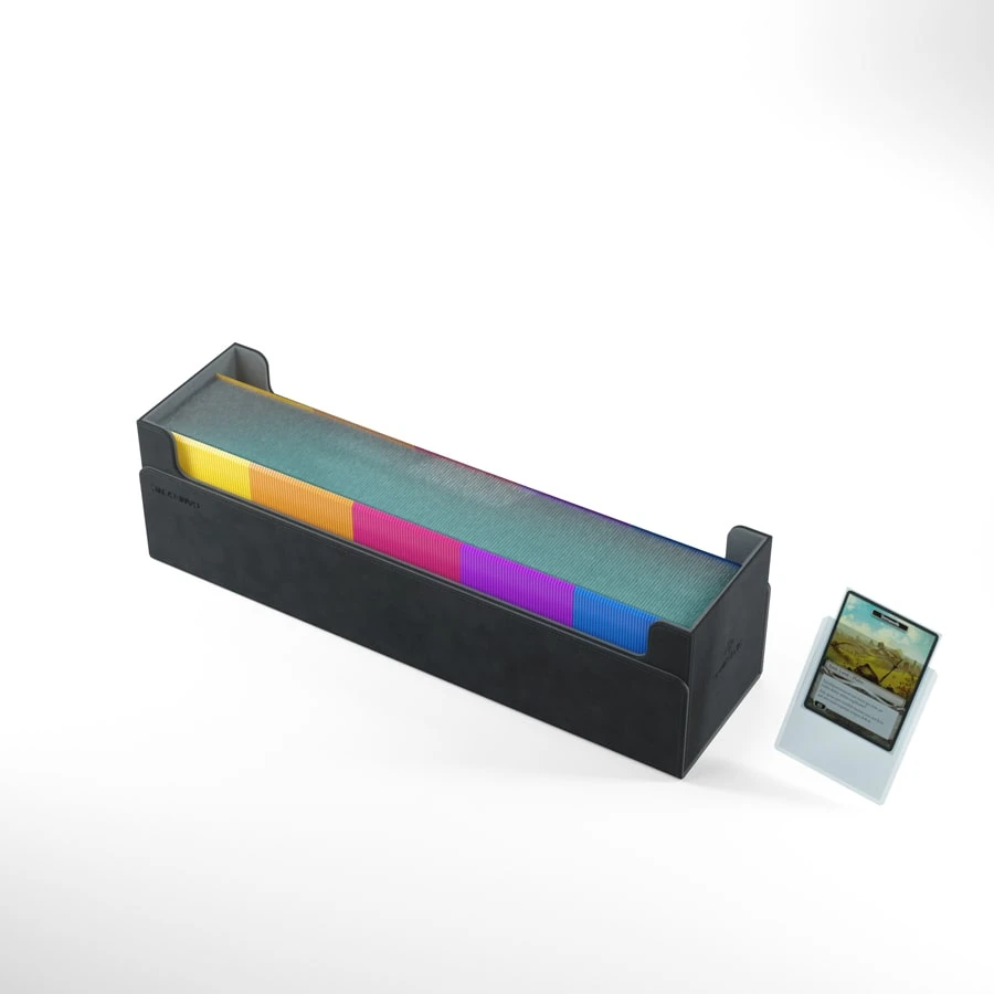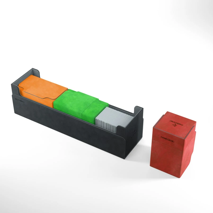 The Dungeon S 550+ is the little sibling of our very popular and highly-rated Dungeon 1100+. The one-row design is perfect to hold several deck boxes, playmats, accessories, and, of course, a huge number of single- or double-sleeved cards or cards protected in bigger Toploaders. Our Dungeon S 550+ is so compact that it even fits in most regular backpacks!