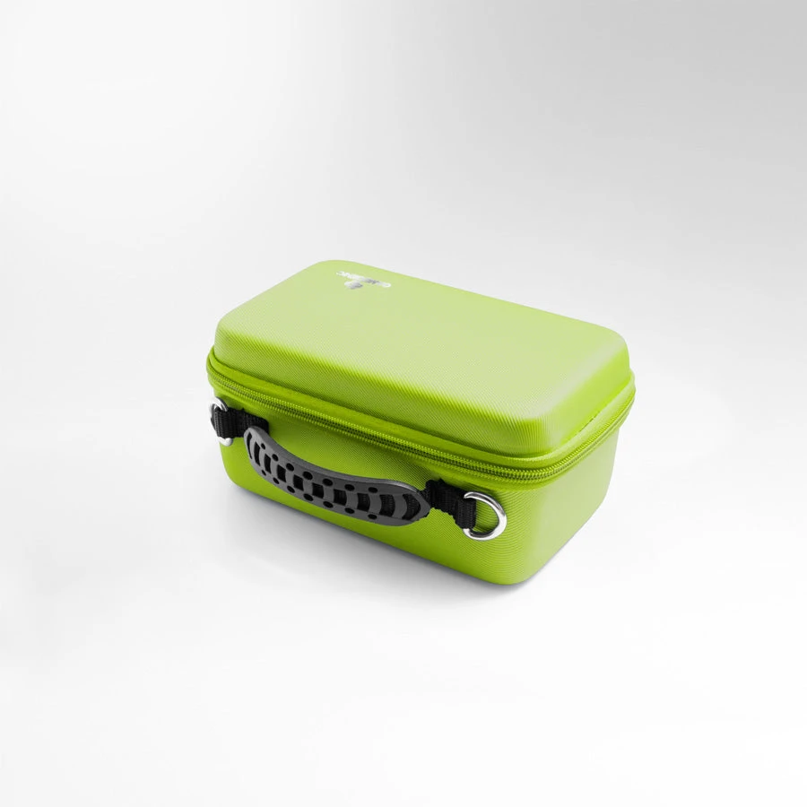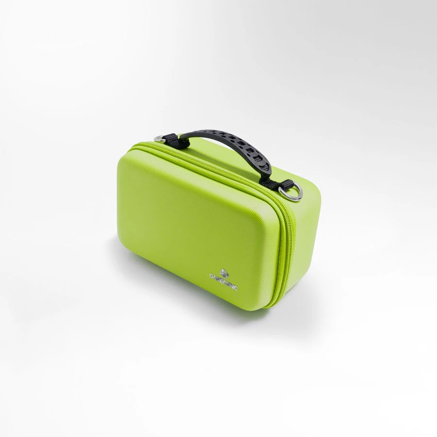 The Game Shell is a portable case, perfectly sized for a wide variety of usages. It fits up to 250 double-sleeved cards, tokens, dice or even complete small games. The outside material comes in durable and resistant nylon with a premium structure. It boasts a reinforced handle and two zippers, hidden and protected by the outer material. On the inside, the Game Shell provides an accessories compartment and two adjustable dividers. This enables a completely free setup, adjustable to your needs and preferences.