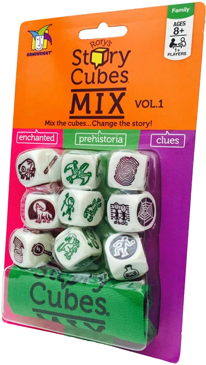 Get all three sets of Rory’s Story Cubes MIX editions at once – Clues, Enchanted, and Prehistoria