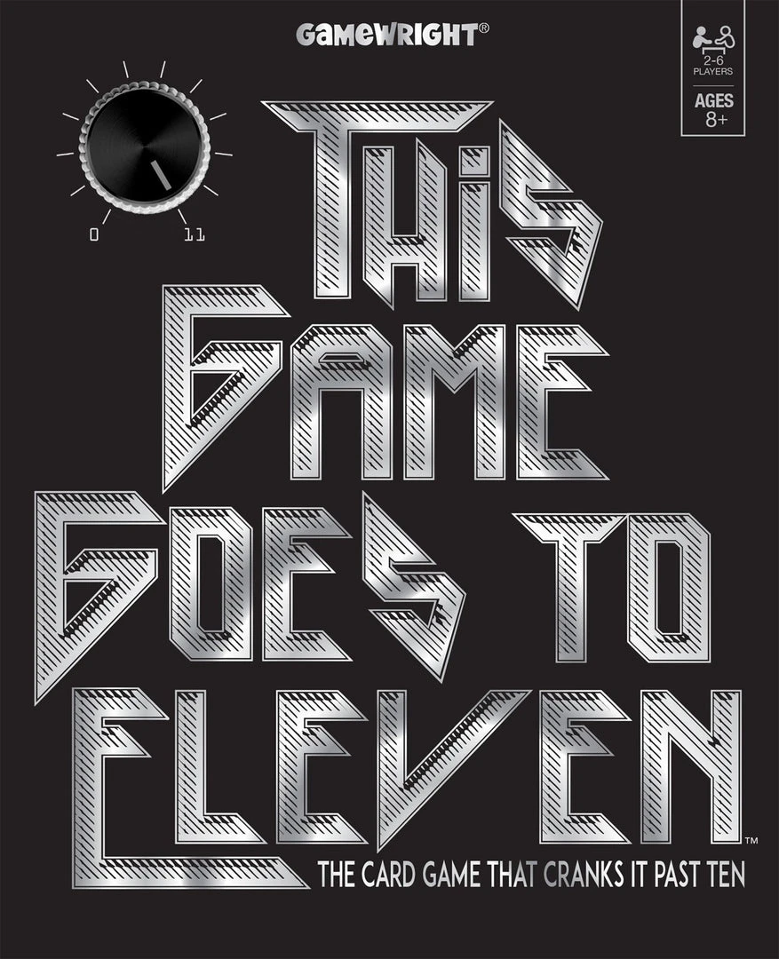 In This Game Goes to Eleven, named after a joke in the film Spinal Tap, players play number cards from their hands into the center pile, seeking to make the pile sum to 11. If they are able to get to exactly 11, they can pass the stack off to another player. If, however, they are forced to play a card that brings the total over 11, they have to take the entire pile themselves. Players race to be the first one to be left without any cards.