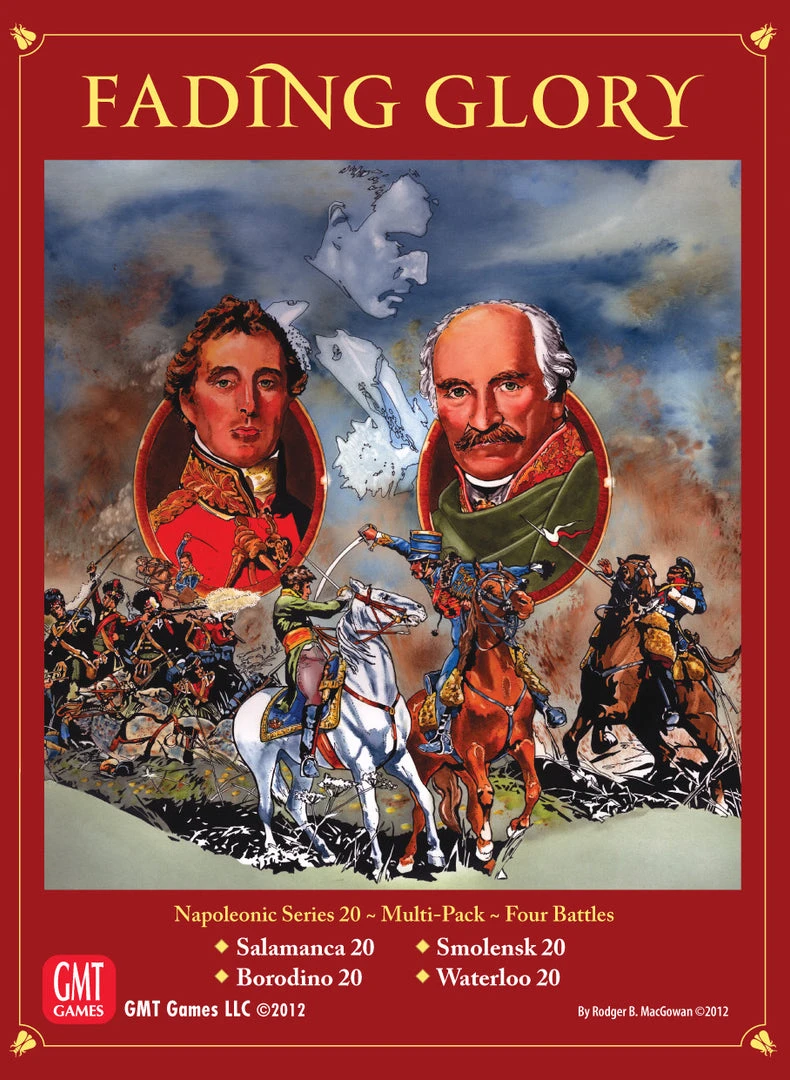 Fading Glory is the second game (No Retreat – The Russian Front Deluxe Edition is the first) we (GMT Games) are producing as part of our strategic friendship/partnership with Victory Point Games, and the first game we are producing from their popular Napoleonic 20 series. The idea for this and future volumes is that we will take multiple existing games from the VPG Napeoleonic 20 series, add an as-yet-unpublished game to the mix, and create a GMT boxed game with 3-4 games in the box, using larger (3/4″) counters and GMT production.