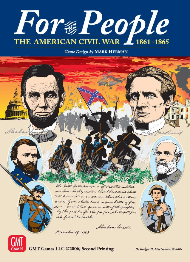 For the People is a grand strategy game of the American Civil War covering the conflict from Texas to Pennsylvania, from the firing on Fort Sumter to the end at Appomattox Court House. You take the role of either President Lincoln or President Davis and command the armies, promote and relieve generals, conduct amphibious assaults, dispatch cavalry raids, and even battle incompetency and political intrigue among members of your own cabinet.