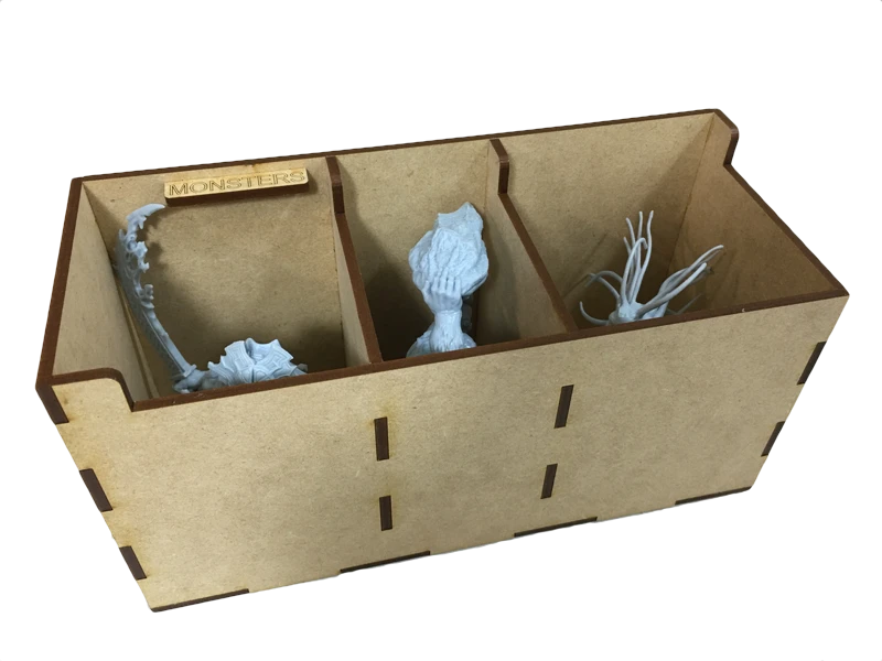 - etched tabs for expansions, monsters, and player factions