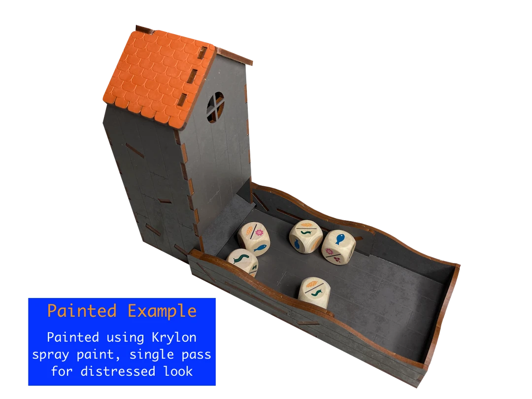 This dice tower includes engravings, which really elevates this dice tower, especially if you stain or paint it!