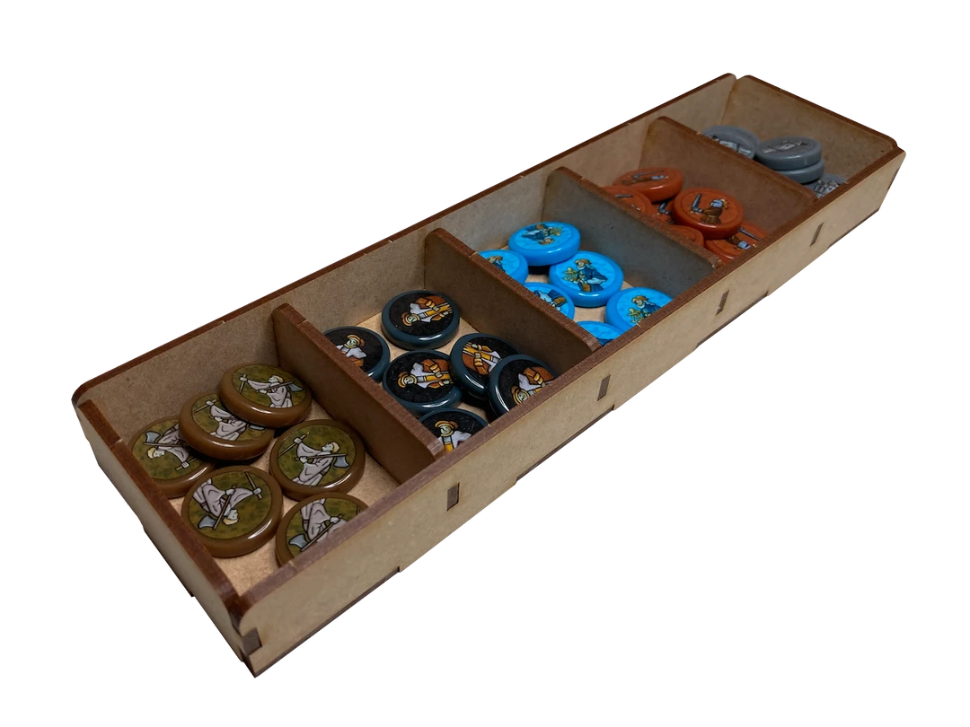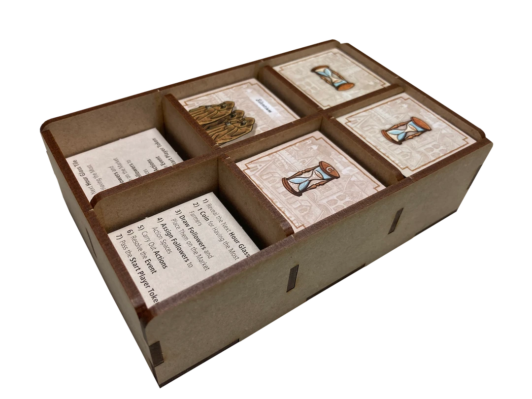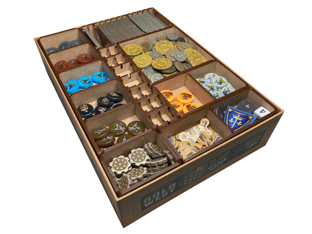 The Go7 Gaming organizer for Orléans provides a total storage solution for the TMG retail/deluxe version of Orléans, expansions, plus promos. Our solution is designed to store Orléans standard components, but can accommodate BGG resin character tokens or the Orléans Deluxe components from the KS and can be stored in the base game box (TMG edition), Invasion box (TMG edition), 2014 Deluxe box (TMG KS).