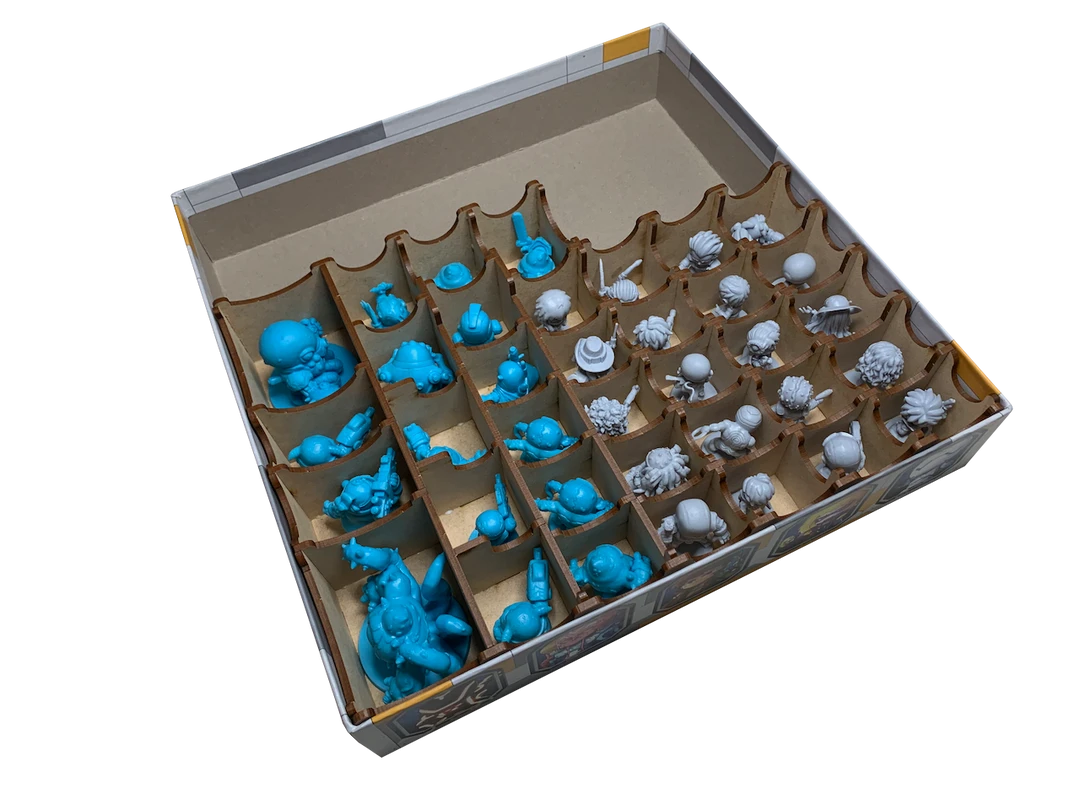 This Go7 Gaming organizer for the Starcadia Quest large expansion boxes provides a storage solution for large/medium/small cards (sleeved/unsleeved), thirty-six (36) minis, 3 campaign pads, and additional upgrade tiles from the various expansions and bonus content.