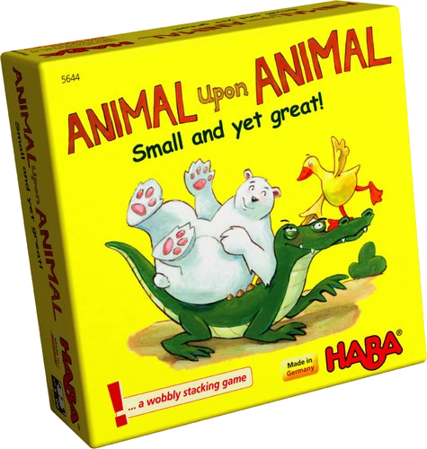 In Animal Upon Animal: Small and Yet Great!, the players build an animal pyramid by stacking their animals one by one on top of each other, without any of them falling off. The die indicates how many animals can be stacked, where and who shall stack them. Be the first to stack all of your animals in the pyramid and you win!