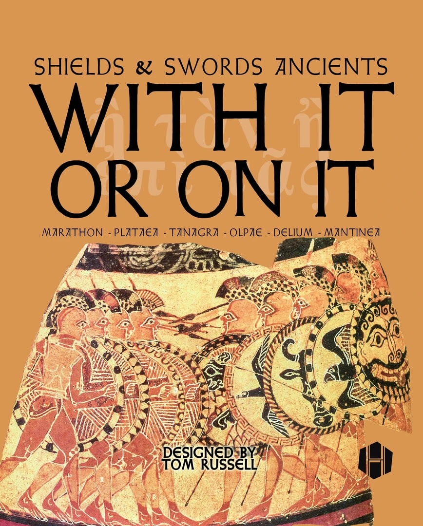 With It Or On It is the first game in the Shields & Swords Ancients series. Like its medieval era cousin Shields & Swords, this series takes a broad brush approach to simulating battles, this time of the ancient period, with an emphasis on speed and playability. While the basic philosophy and the core system of using Command Markers to activate Wings remains the same, each game in this Ancients line is designed from the ground-up to incorporate elements specific to its period and style of warfare.