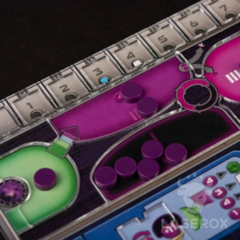 Comes with clips to be attached to the playerboards. The overlays are slightly larger than the playerboards, to ensure enough material on the edges around the cut-outs.