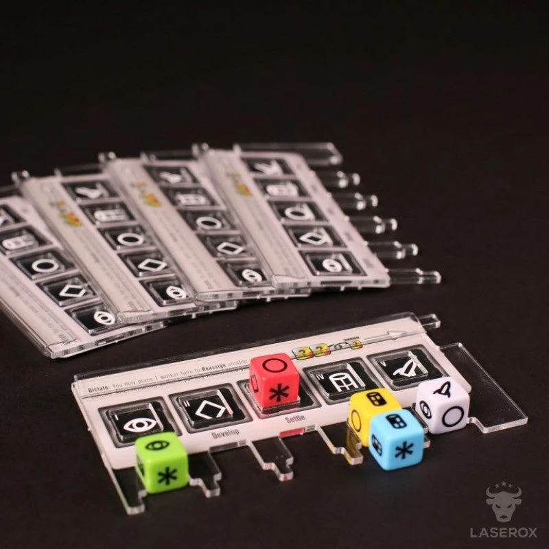 You have all the dice flying around in your box? Get our Stardust Storage for Roll for the Galaxyâ„¢ to keep all things neatly organized! Store the dice in the dice container, with easy to use overlays. This organizer will support the base game and the Galaxy: Ambition expansion.