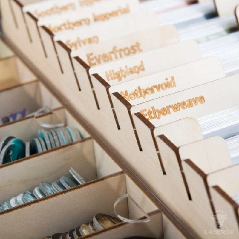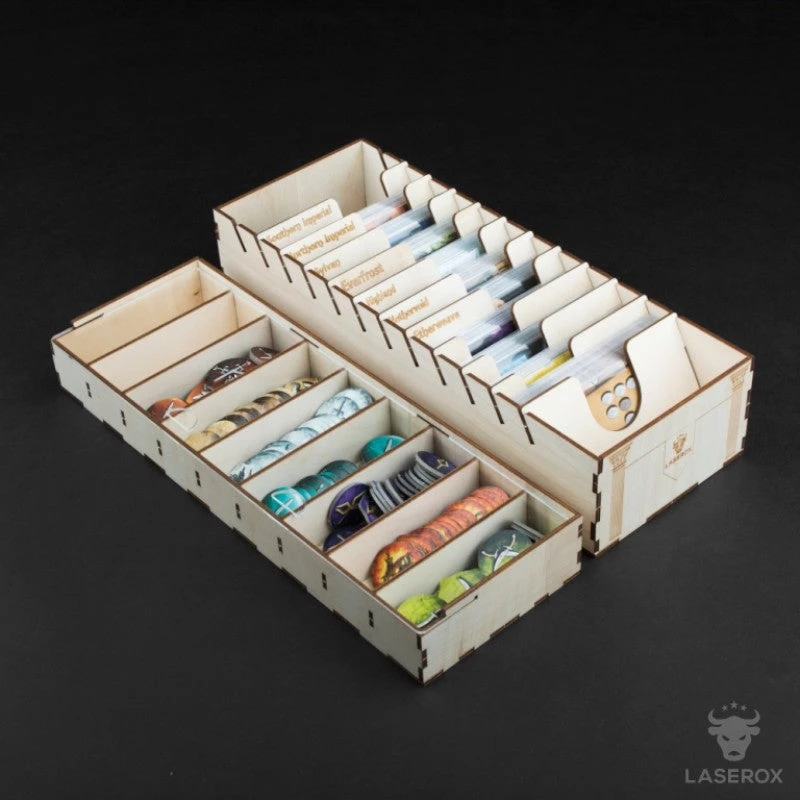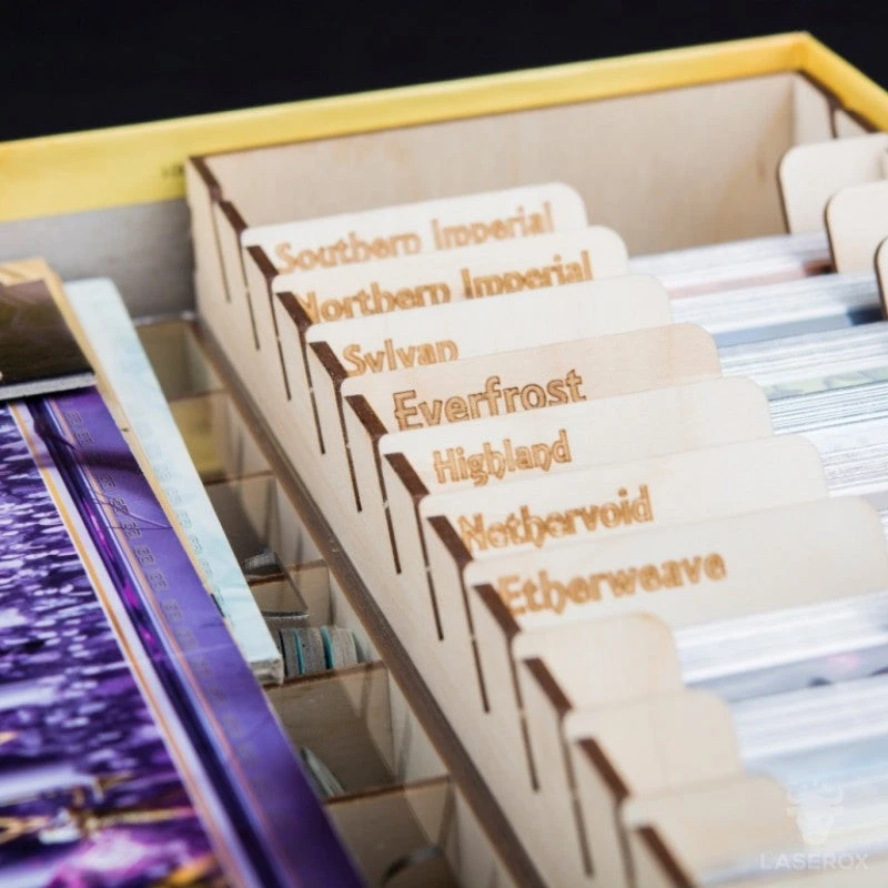 Tash-Kalar: Arena of Legends is a game played by masters of magic. Two to four summoners encounter each other in the Tash-Kalar arena, either in teams or each on his own, and prove their skill and strategy in a short but intense battle. With this board game organizer the cards can be stored for each faction separately. Save you time for playing.