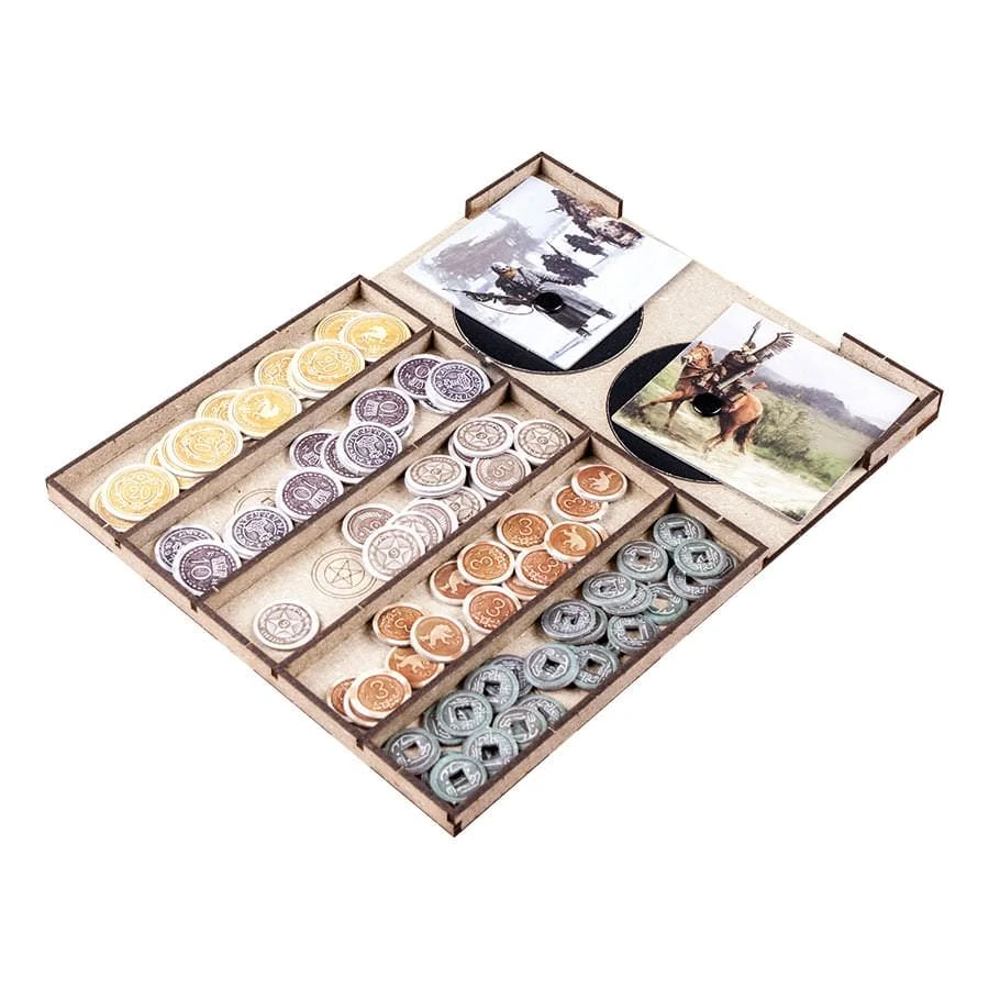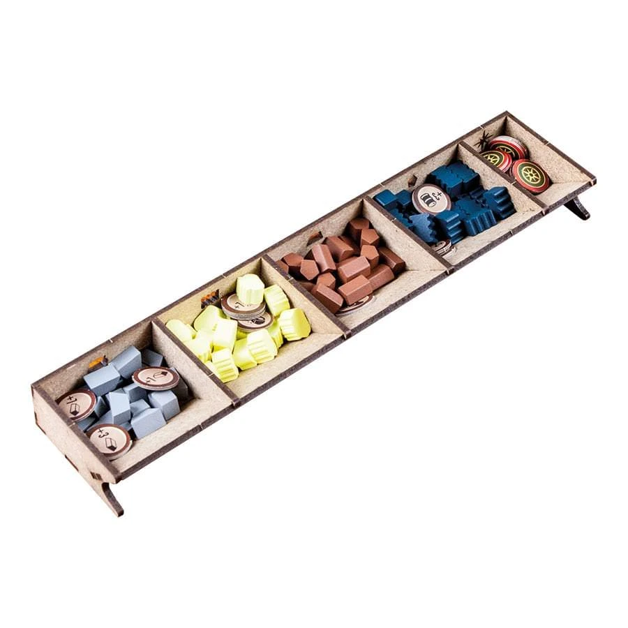 • 1x card/tiles holder with 5 slots, suitable for retail edition cards, sleeved up to 60 microns (eg Sapphire) or unsleeved;