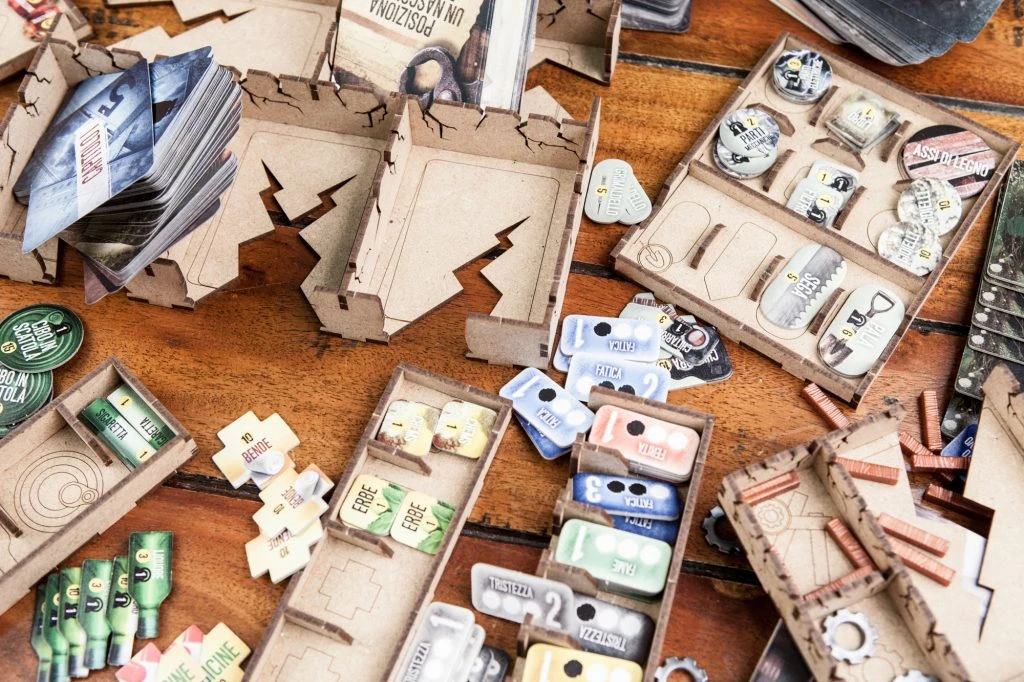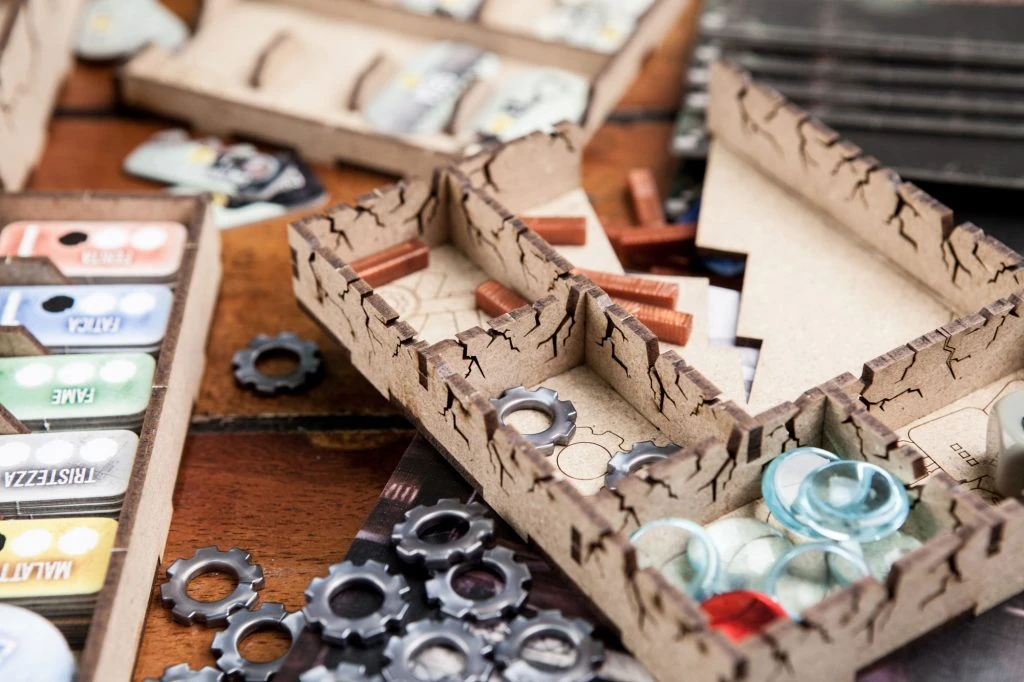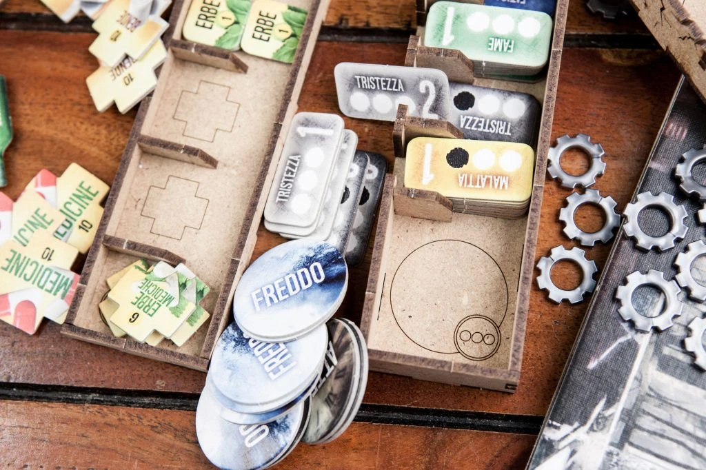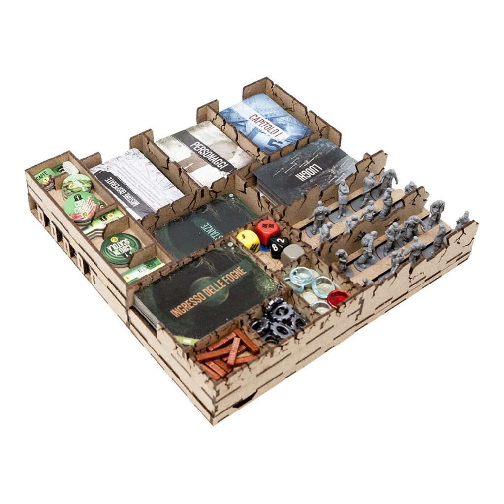 Organizer compatible with This war of mine (base game or with expansion Tales from the Ruined City). This organizer can fit alternatively base game or base game + expansion.