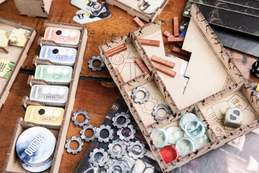 • 1x card holder with additional slots for various pieces (gears, wood, water etc);