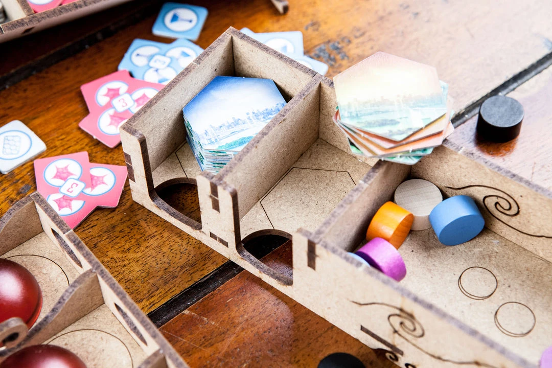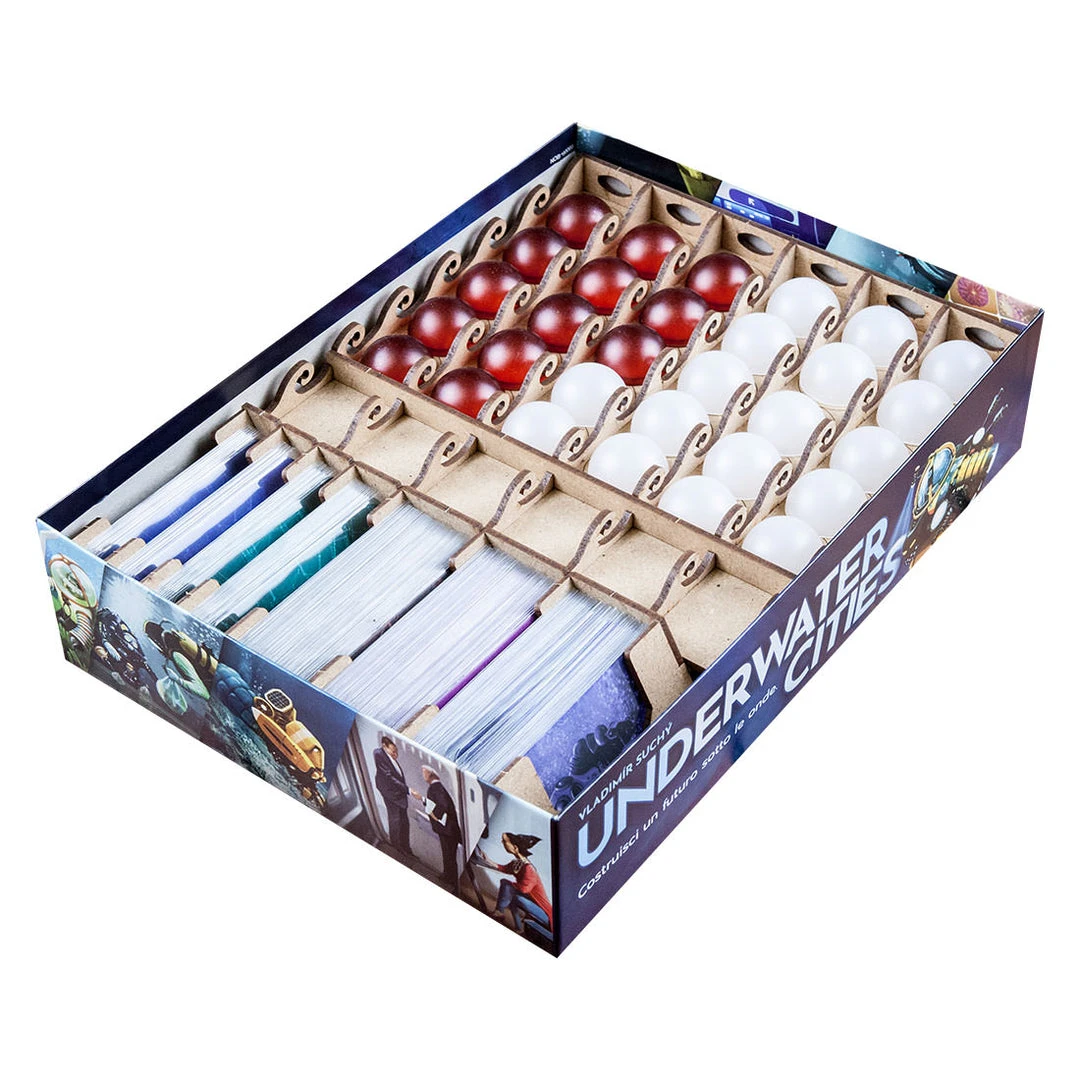 • 1x container for normal and symbiotic cities, with guide engravings for positioning and number of players. Space for more cities (eg biodome promo);