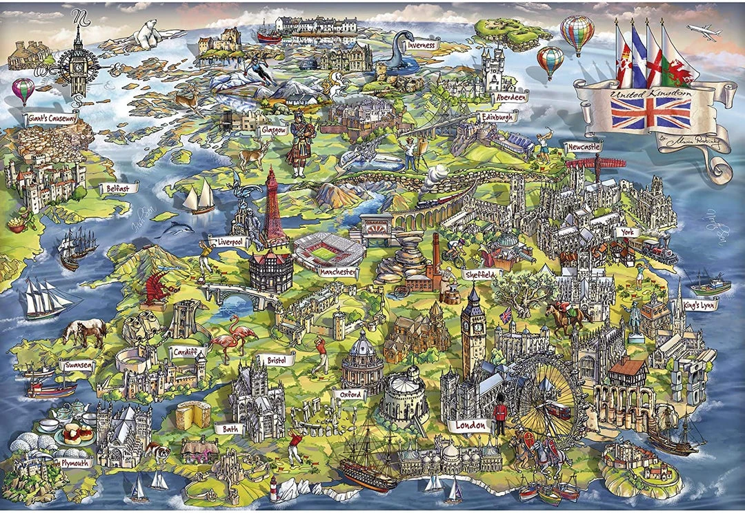 From the highlands and islands of Scotland, the emerald isle of Northern Ireland, the valleys and choirs of Wales to England’s green and pleasant lands, Britain truly is blessed. Artist Maria Rabinky has adorned the British Isles with a beautiful assortment of iconic and characterful images that will be familiar to many of us. As with all Gibsons jigsaws, the beautifully illustrated pieces are made from the highest quality 100% recycled board and are therefore a pleasure to work with again and again.
