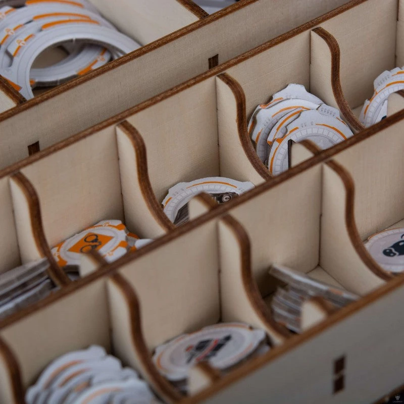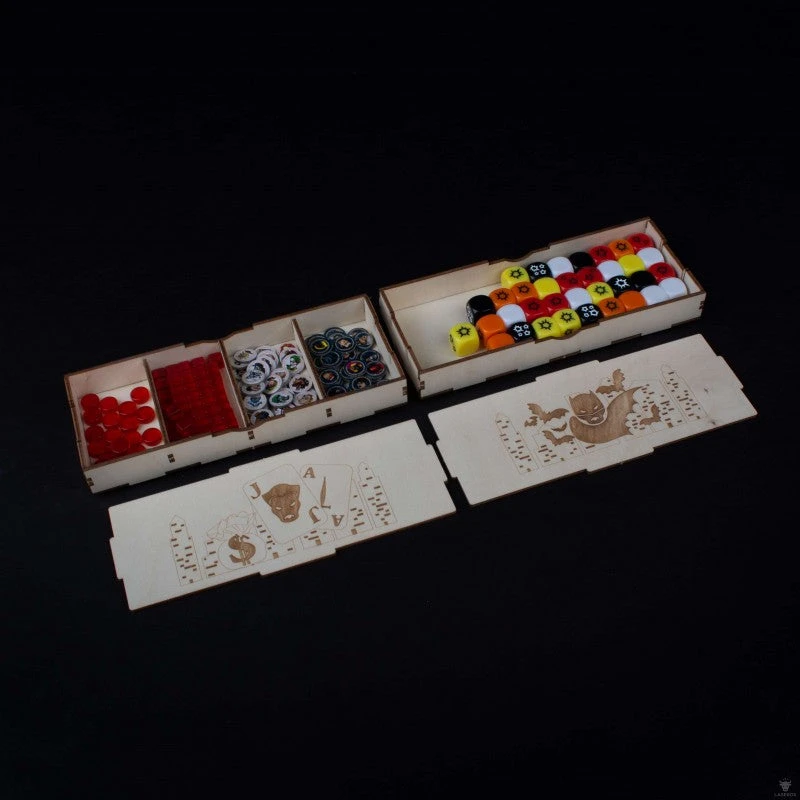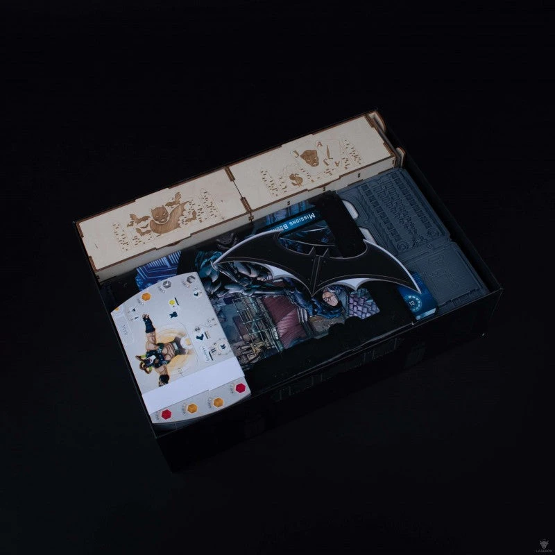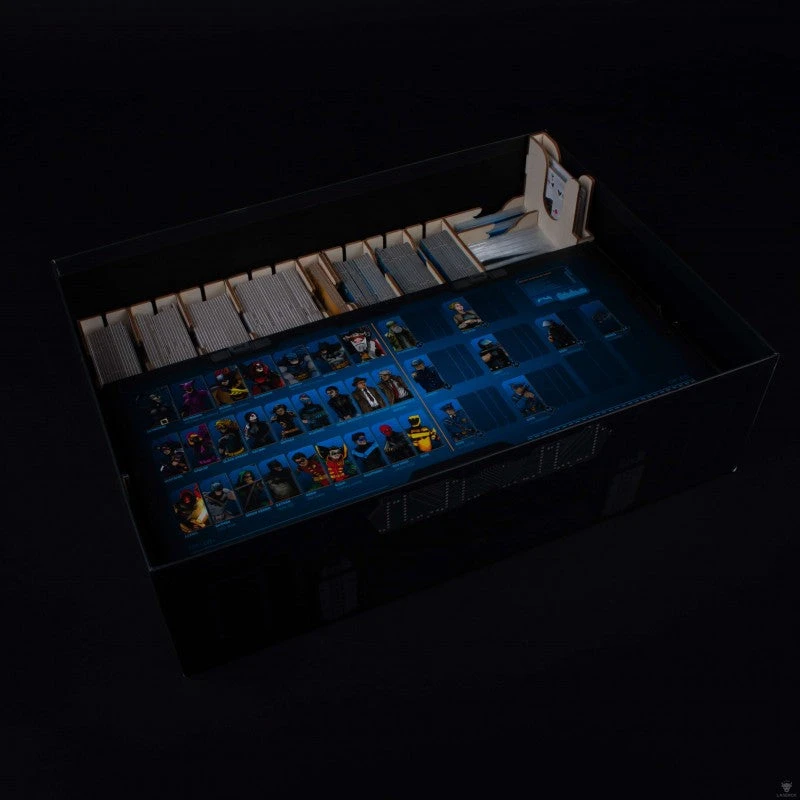 Batman: Gotham City Chronicles a villain faces off multiple heroes. Our organizer can hold the base game and all expansions in 1 box! Set up quick so Batman and his partners can chase the villain within minutes!