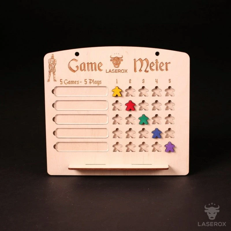Your like challenges, but the 10×10 challenge would be to much? Try the Game Meter Mini. The acrylic windows will let you write any game name on them with a white board marker and easily wipe them off. You can also insert a small piece of paper behind it. Hang it on the wall in your game room and always see how far you already are in this years challenge. 5 games played 5 times! Good Gaming!