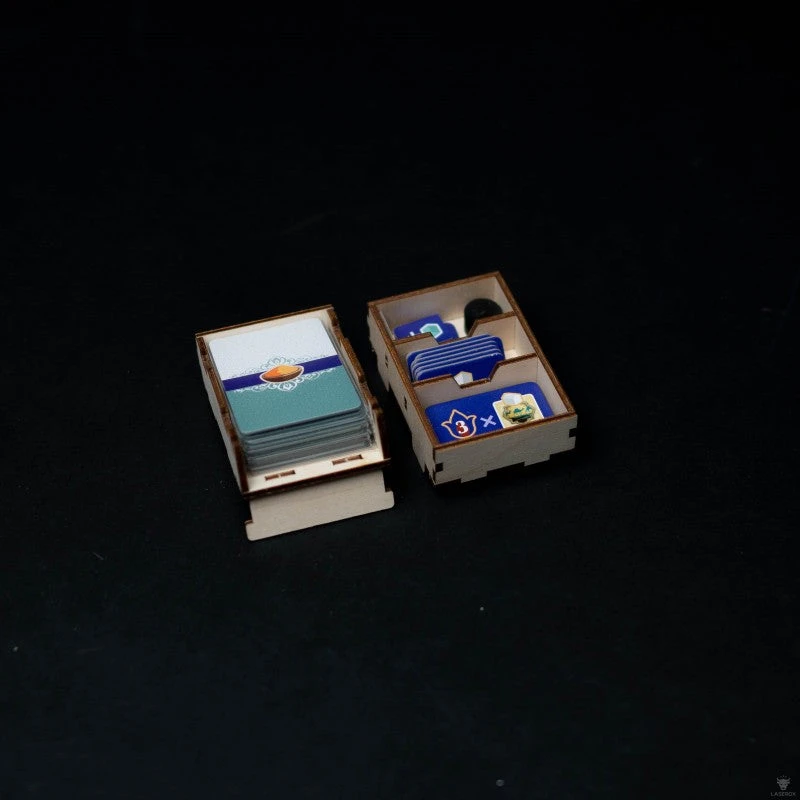 A truly beautiful organizer for a tense economic game charting the rise and fall of the greatest city in the world. Keep all your game components efficiently stored in the game box and during game time. The skillfully designed trays are matching the artwork of the game and bring your game experience to a whole other level.