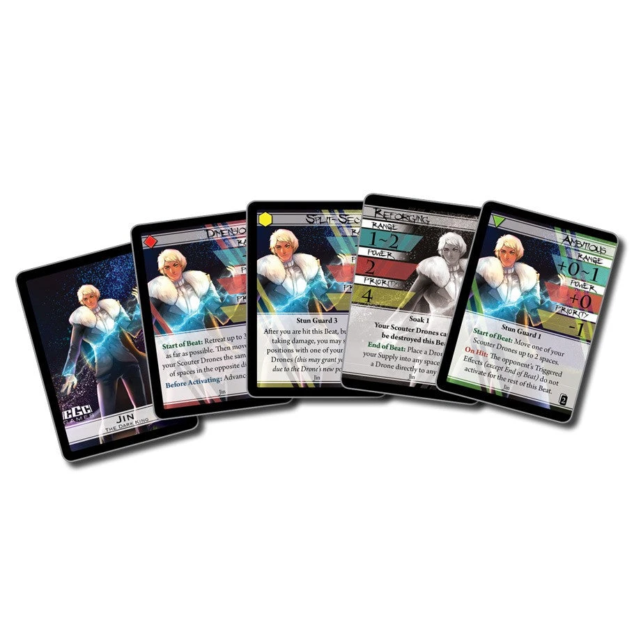 A time traveler from another age, Jin joins BattleCON from the world of Terrene Odyssey by CGC Games. Jin utilizes the aid of two scout drones in order to fight, setting up positional tactics and having his scouts block incoming attacks