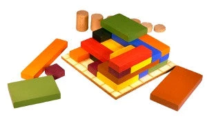In Nivos there are 25 building blocks of different shape and colour. Each turn you place one block with simple rules: when played on the starting grid: don’t put it on an empty space and don’t touch a block of the same colour.