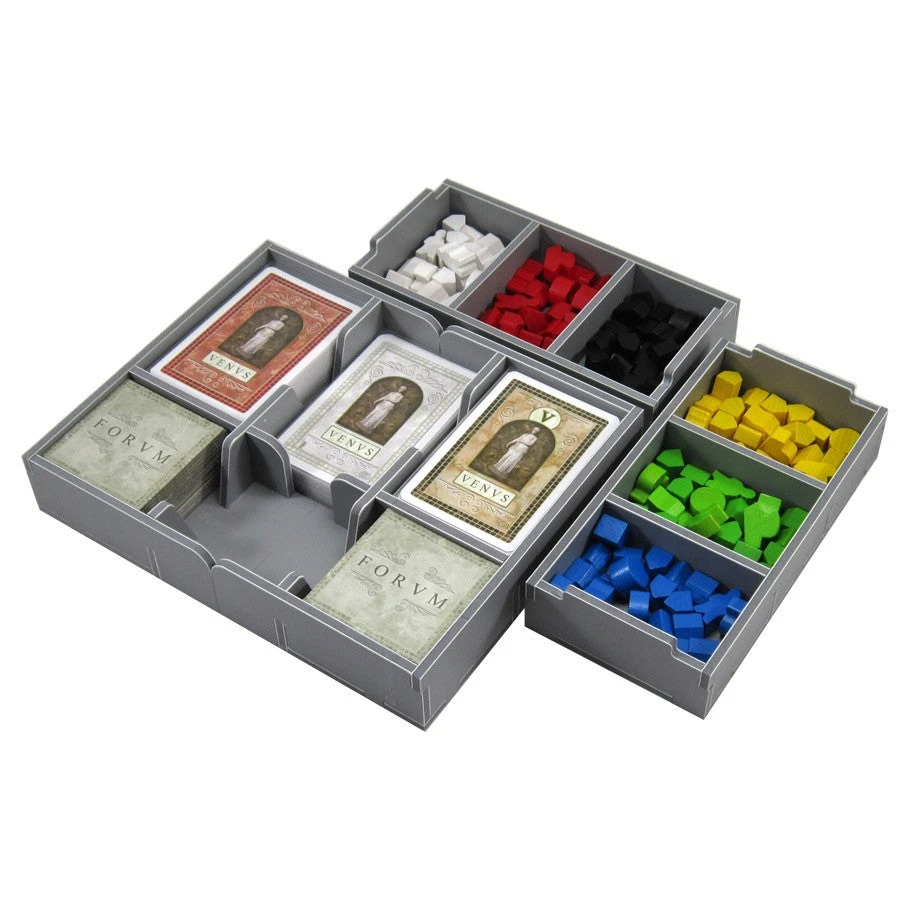 Note: Insert designed for base game with external box dimensions of 28.2 x 39.2 x 5.2 cm, AND also fits the new Concordia Venus base game with box size 28.2 x 39.2 x 7.6 cm.