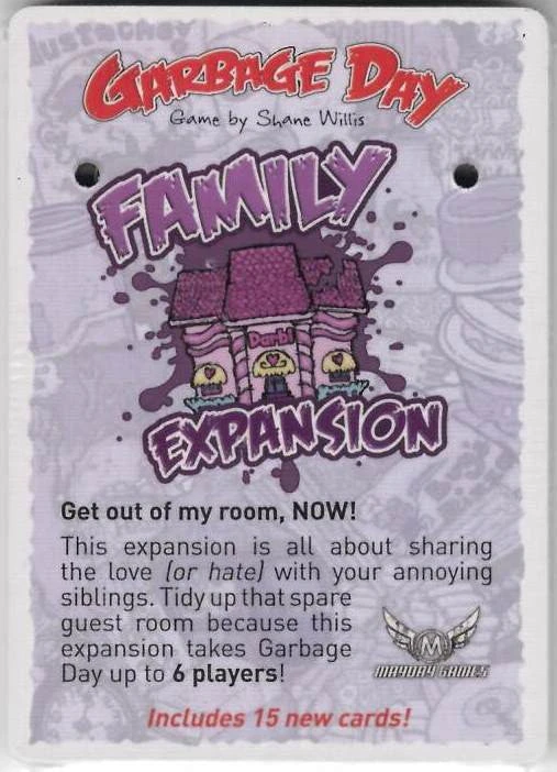 This expansion is all about sharing your love (or hate) with your annoying siblings. Tidy up that spare guest room because this expansion takes Garbage Day to 6 players.