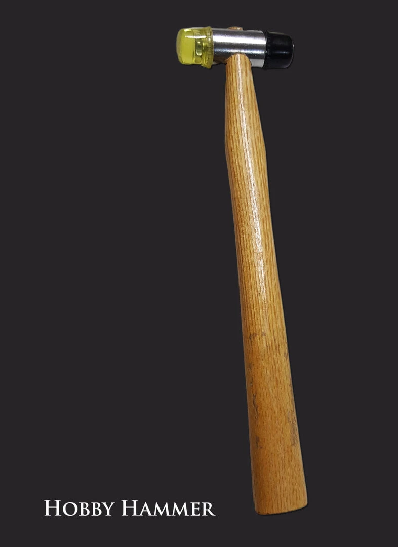 This hammer has a wooden handle with two, strong plastic ends for hammering delicate pieces.