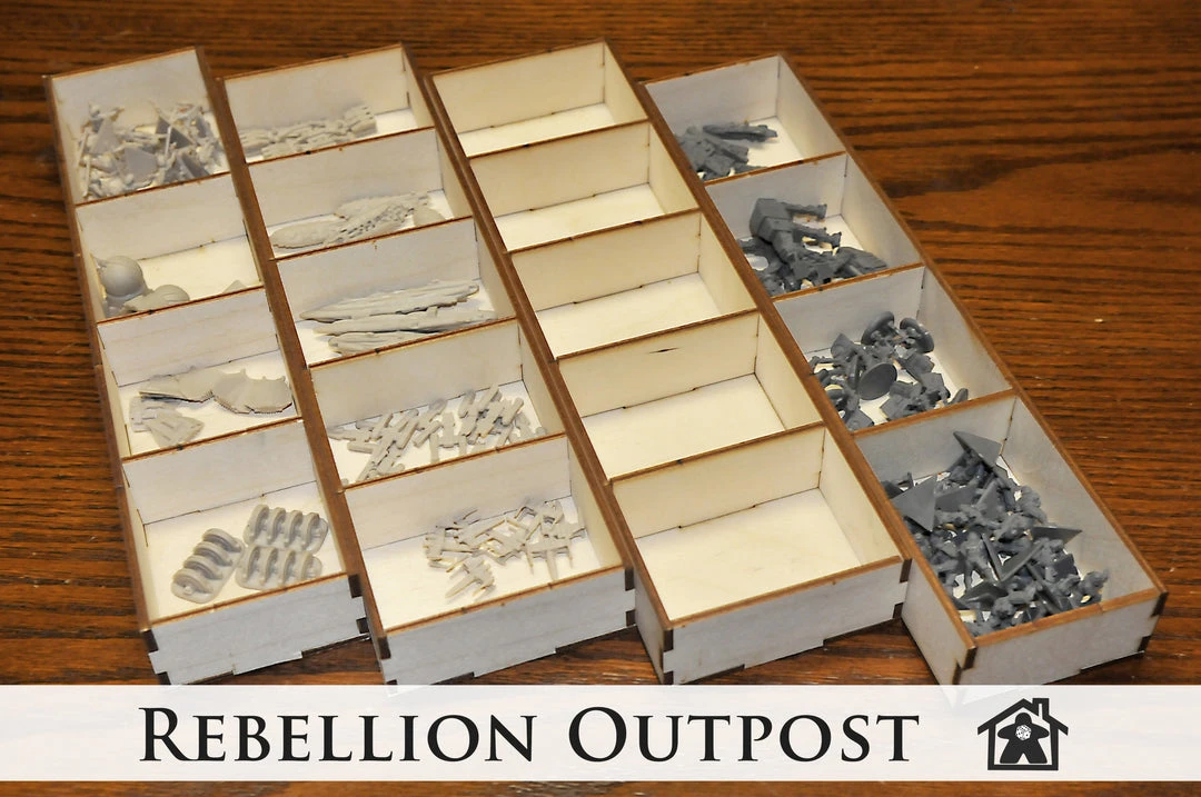 For those of you who need everything in its place this one is for you. The Rebellion Outpost will house everything from Star Wars: Rebellion. As an added bonus, there will be PLENTY of space for expansions. We do MEAN plenty.