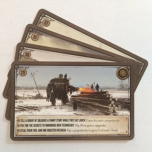 This promo pack for Scythe includes encounter cards 29-32.