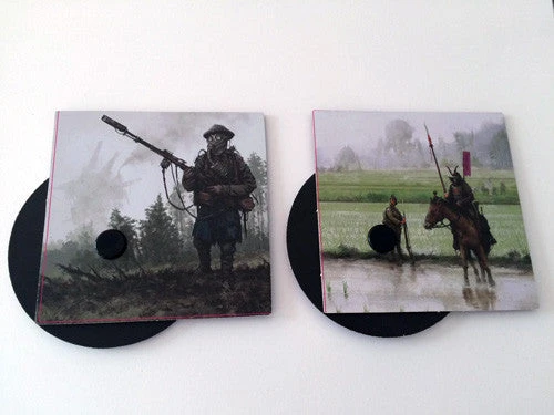 These 2 power dials are for the two expansion factions introduced in Invaders from Afar (Albion and Togawa). They were not included in the kickstarter version of the game, the retail version, nor in the expansion iteself. They are a separate promo item.