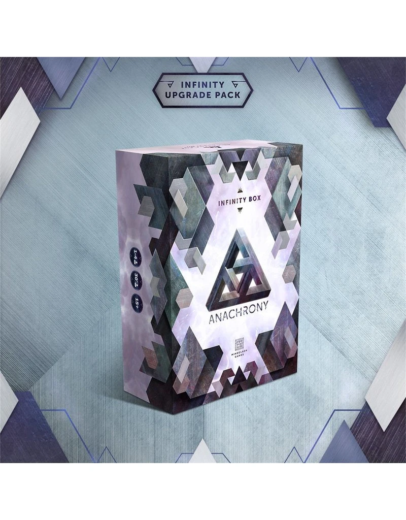 The Infinity Upgrade Pack includes the new Fractures of Time expansion in a large, uniquely numbered box, a plastic tray system to hold all current and previous content, an art and storybook, a set of printed plastic Warp tiles, and all unlocked stretch goals. Metal Neutronium Cubes not included!