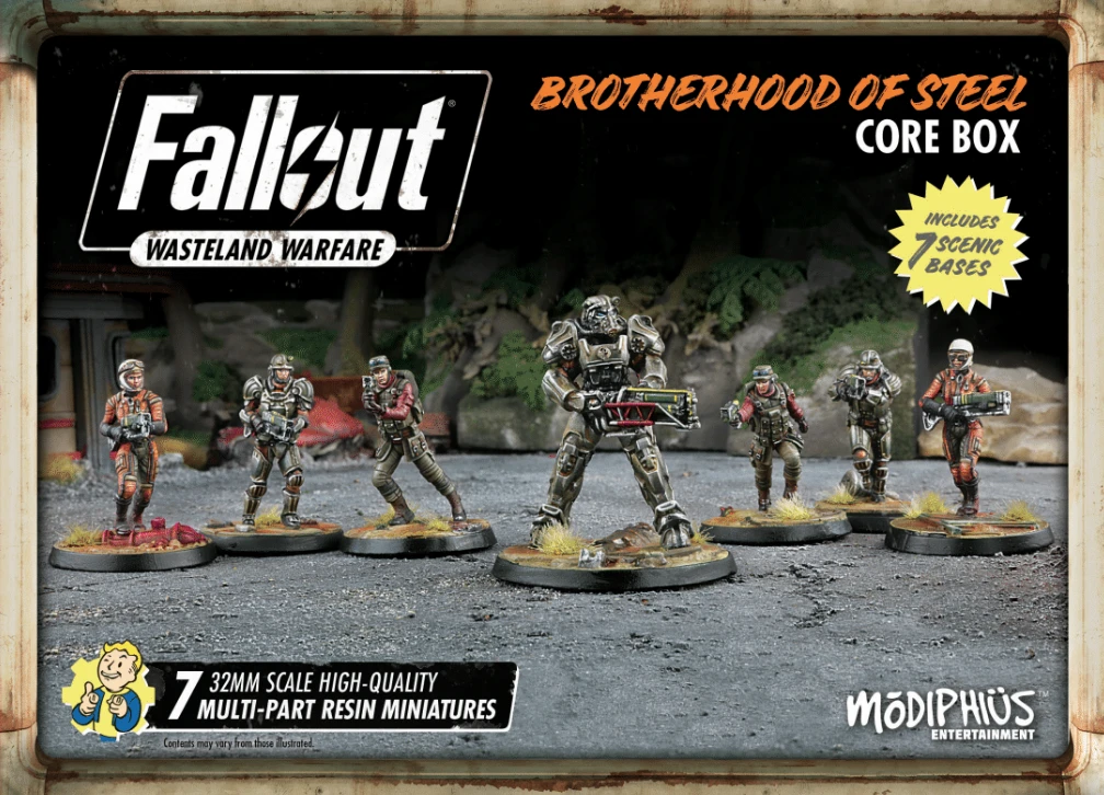 This Fallout: Wasteland Warfare set contains 32mm scale resin miniatures with scenic bases. Each set provides an expansion to the game with new cards for player vs player and AI game modes.