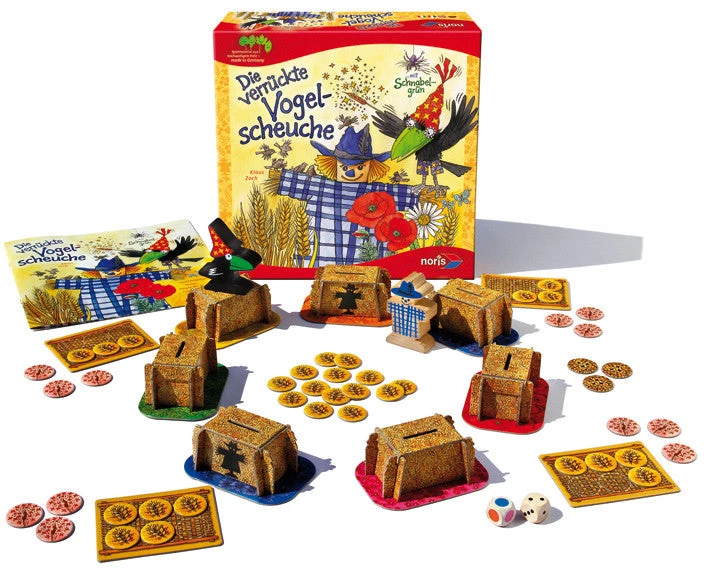 Together with the Magic Raven Schnabelgrün, the children collect leftover grain seeds from the bales of straw for the sparrows. Who remembers best, in which bales the most seeds are? And who lets Scarecrow Otto chase herself/himself to the right bale in the tactically higher version – and uses her/his Magic Stars in the best way?