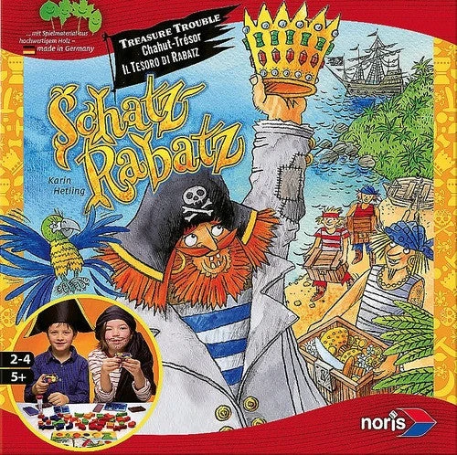 The goal of Schatz-Rabatz is to hand over as many treasures as you can to the Captain. The game is divided in several rounds. Every player has a treasure chest, which must be quickly filled with treasures — but beware because the lid has to fit! After the looting, you may have to hand over some of your loot to Jewels Jack, the boatman.