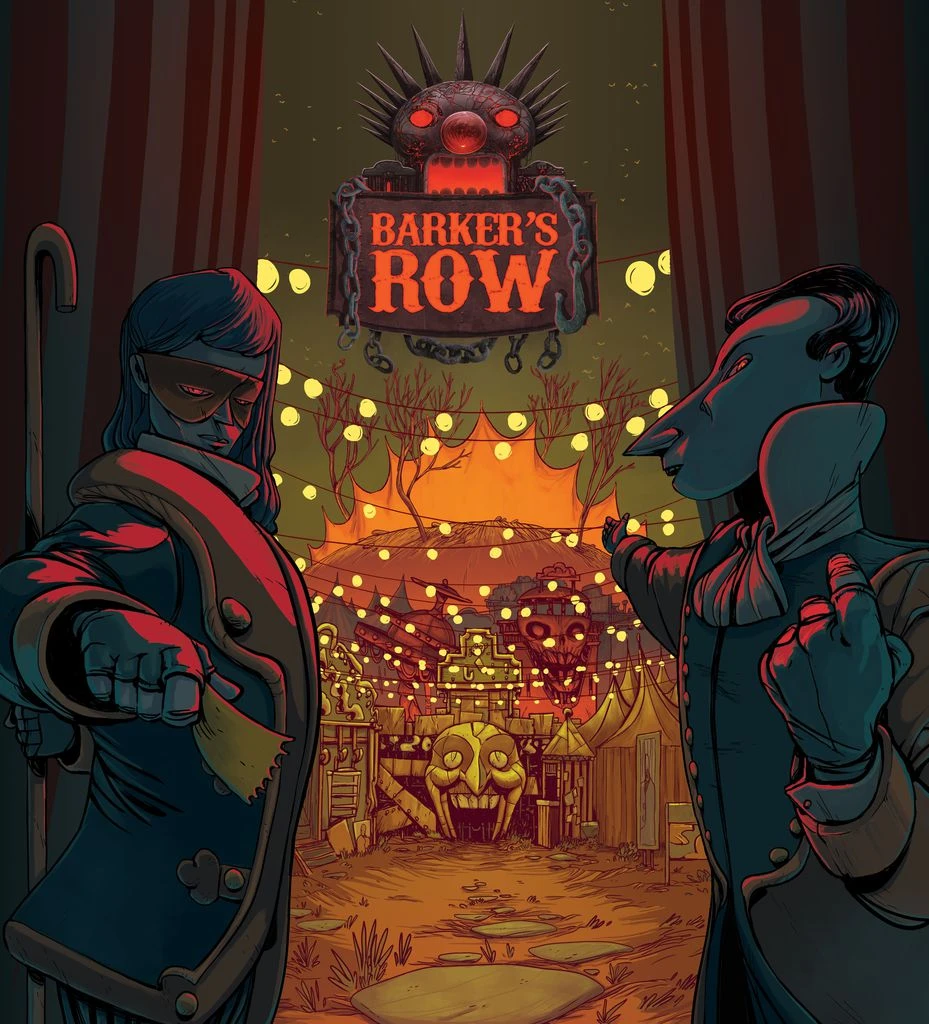 Barker’s Row is a 2-4 player game in which you are a carnival barker trying to fill your 3D chipboard seats with “rube” meeples by playing the most fantastic attractions.